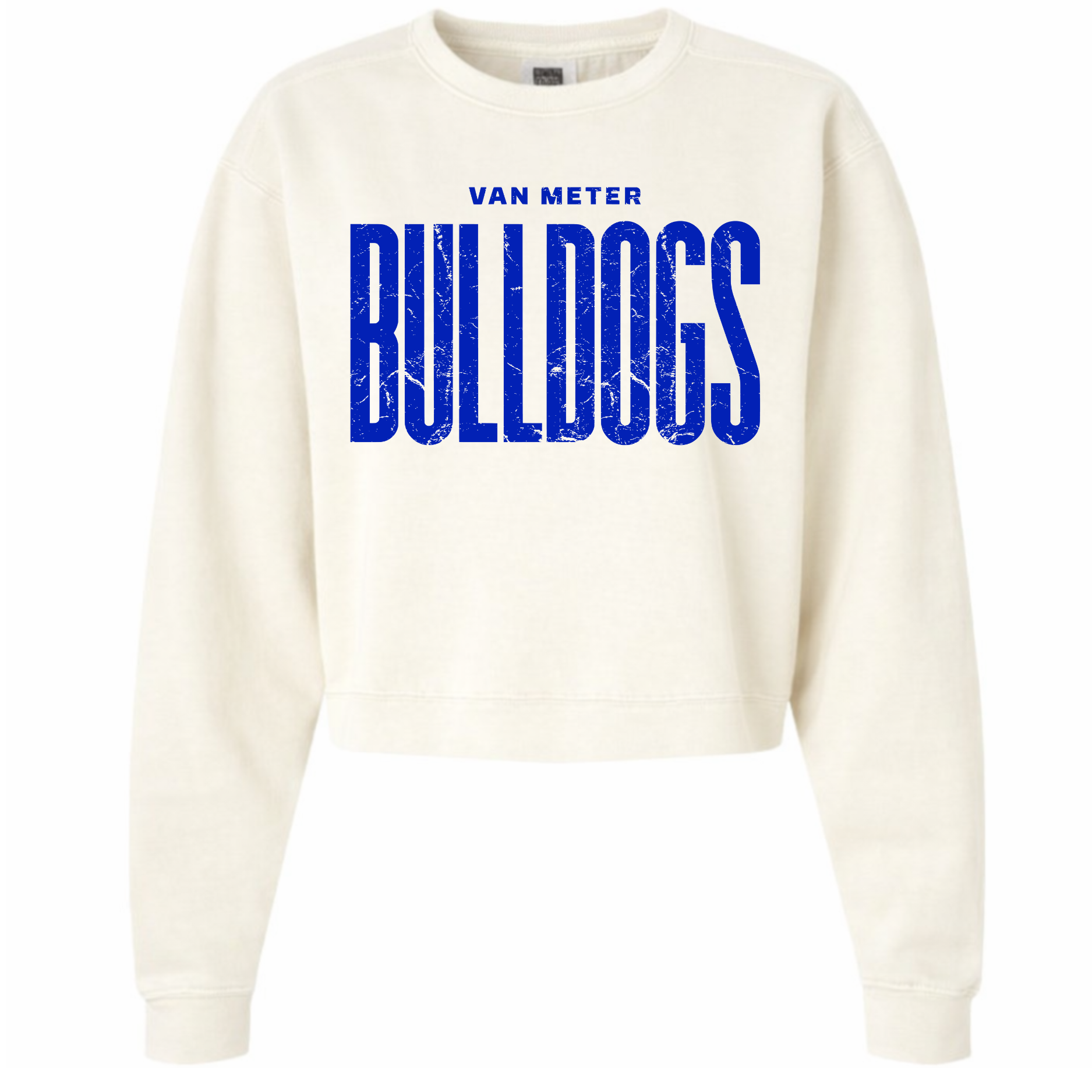 You can choose any color sweatshirt from the spec sheet + any color print. Add these details in notes along with the school and mascot or team/ business/ etc. specify top line and large word.