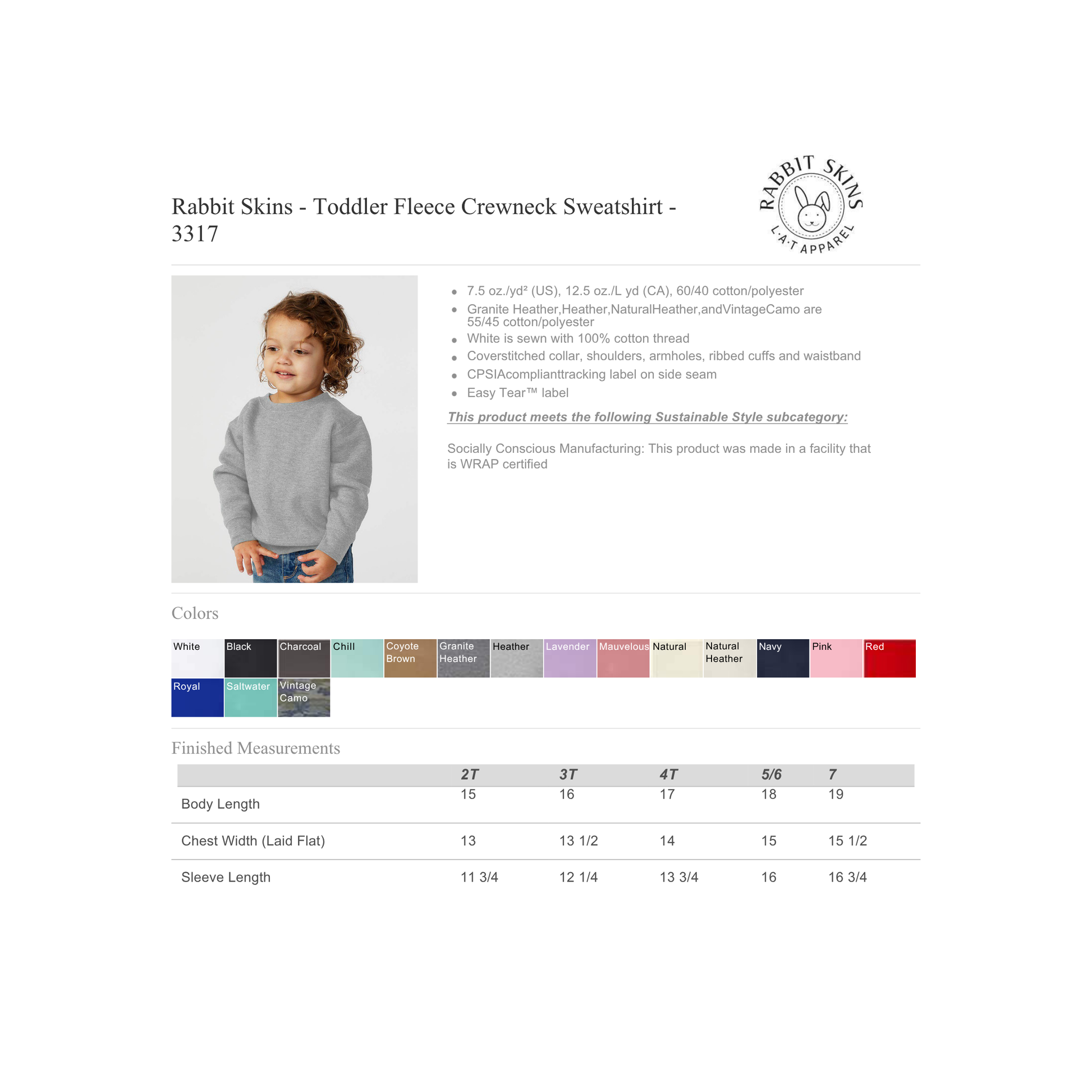 Toddler Crewnecks Rabbit Skins Brand available in Heather Natural