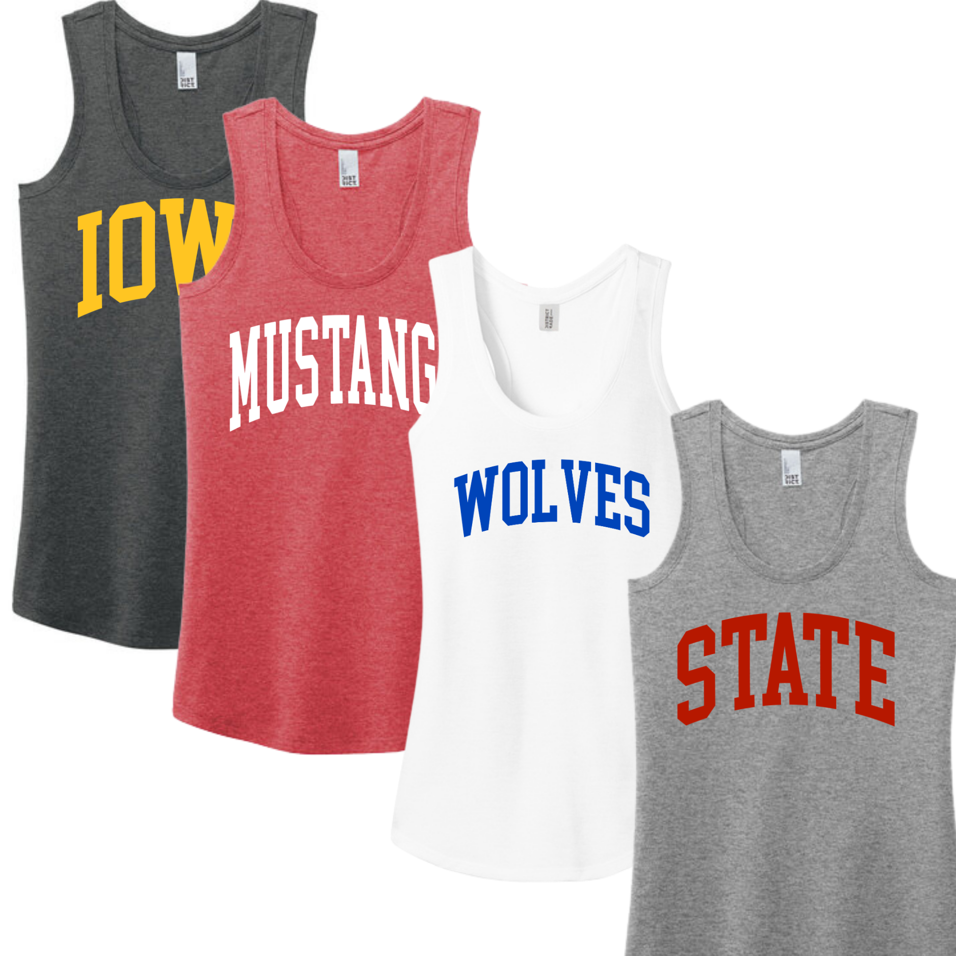Your choice word in any color on any color of these District tanks!