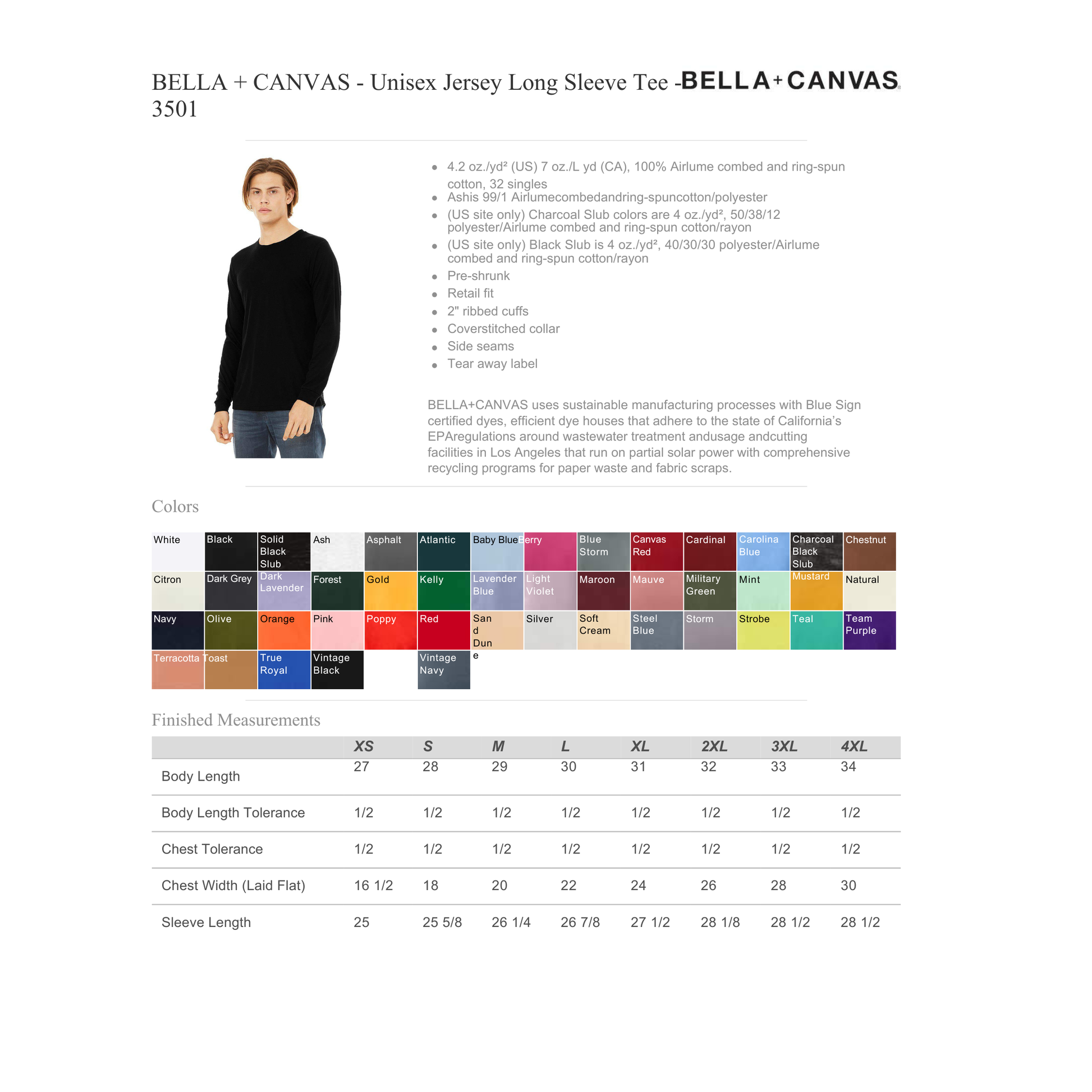 Sizing/ spec sheets for each garment can be found under the GARMENT OPTIONS tab.