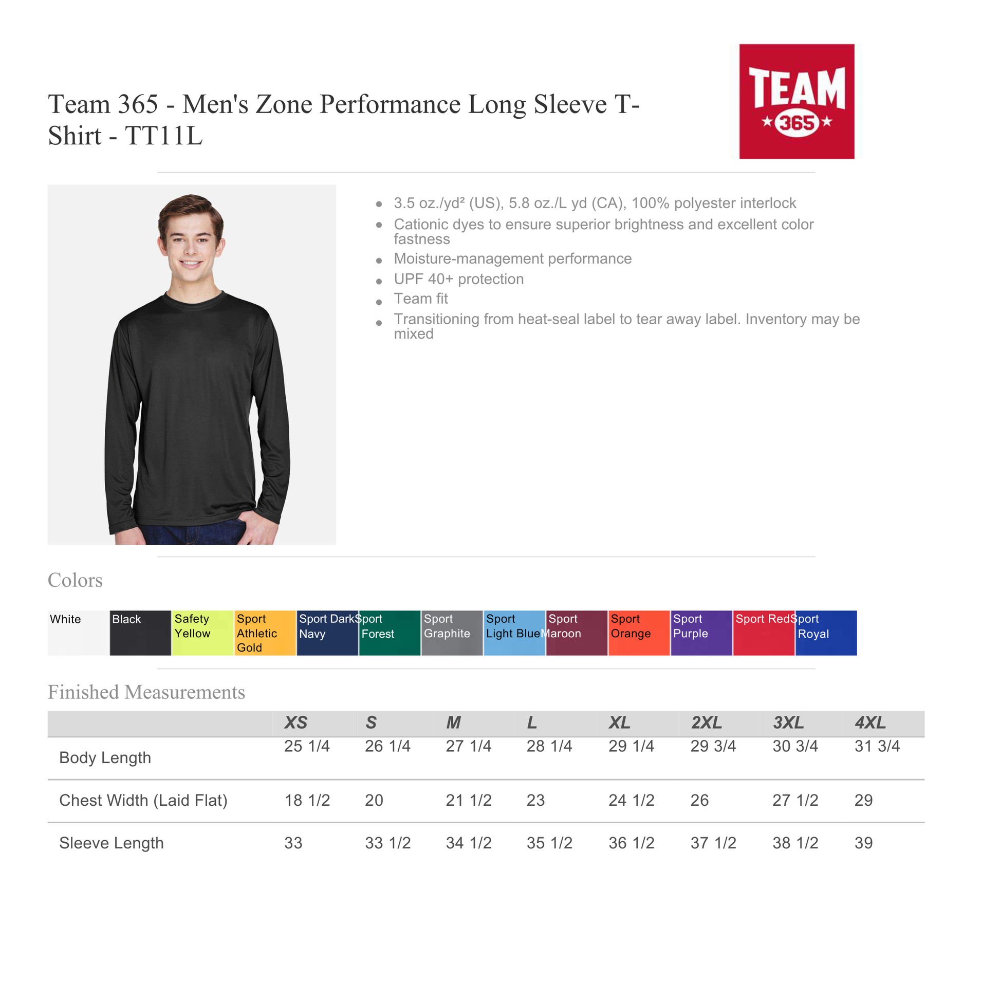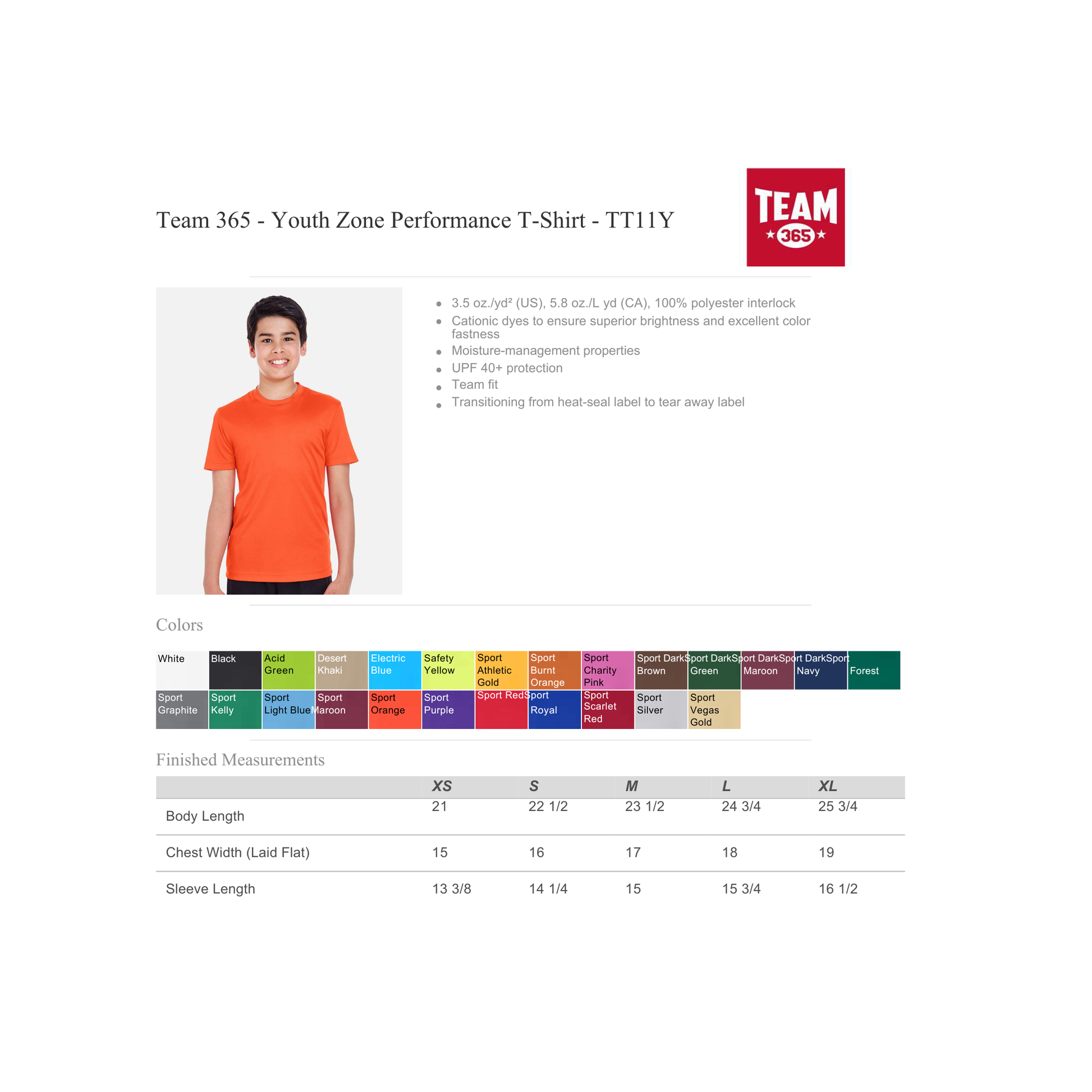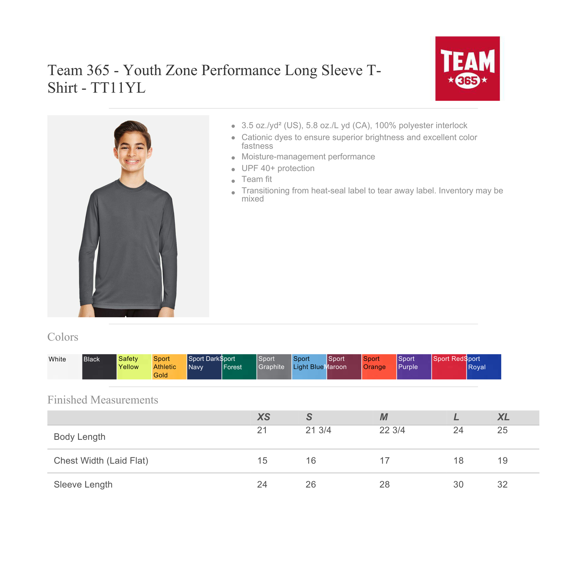 Adult and Youth T-Shirts and Long sleeve T-Shirts drifit material Team 365 Brand